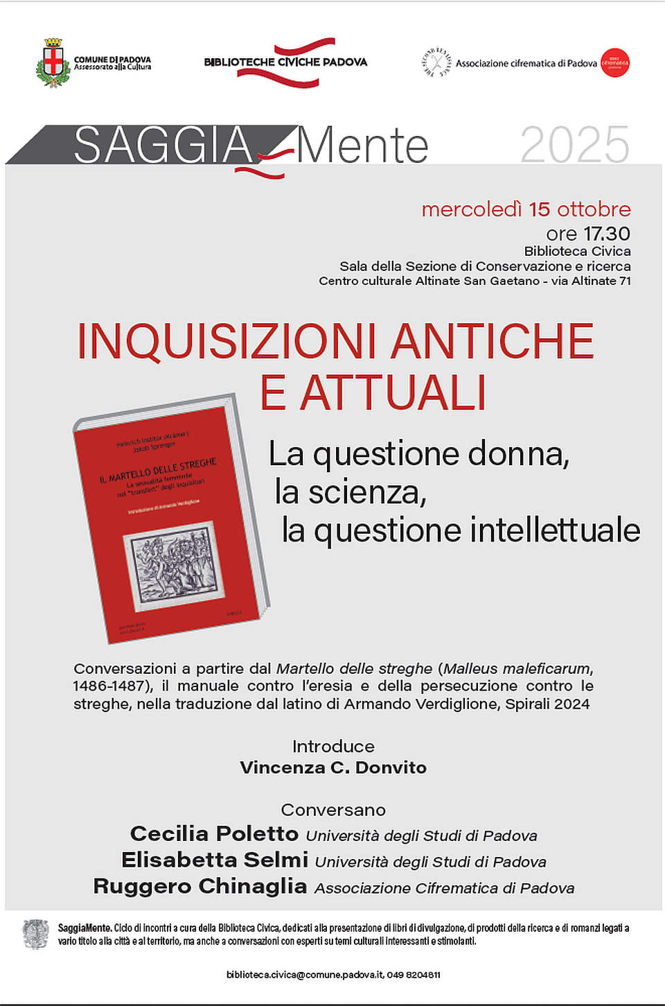 Incontri a cura della BIBLIOTECA CIVICA DI PADOVA
